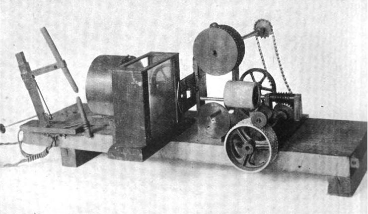 - 1889 年 6 月,格林委托科学仪器商 A. Légé & Co. 按图纸制作实体机,耗时 474 小时,成本 37 英镑 7 先令,1889 年 9 月 26 日交付。设备参数:
